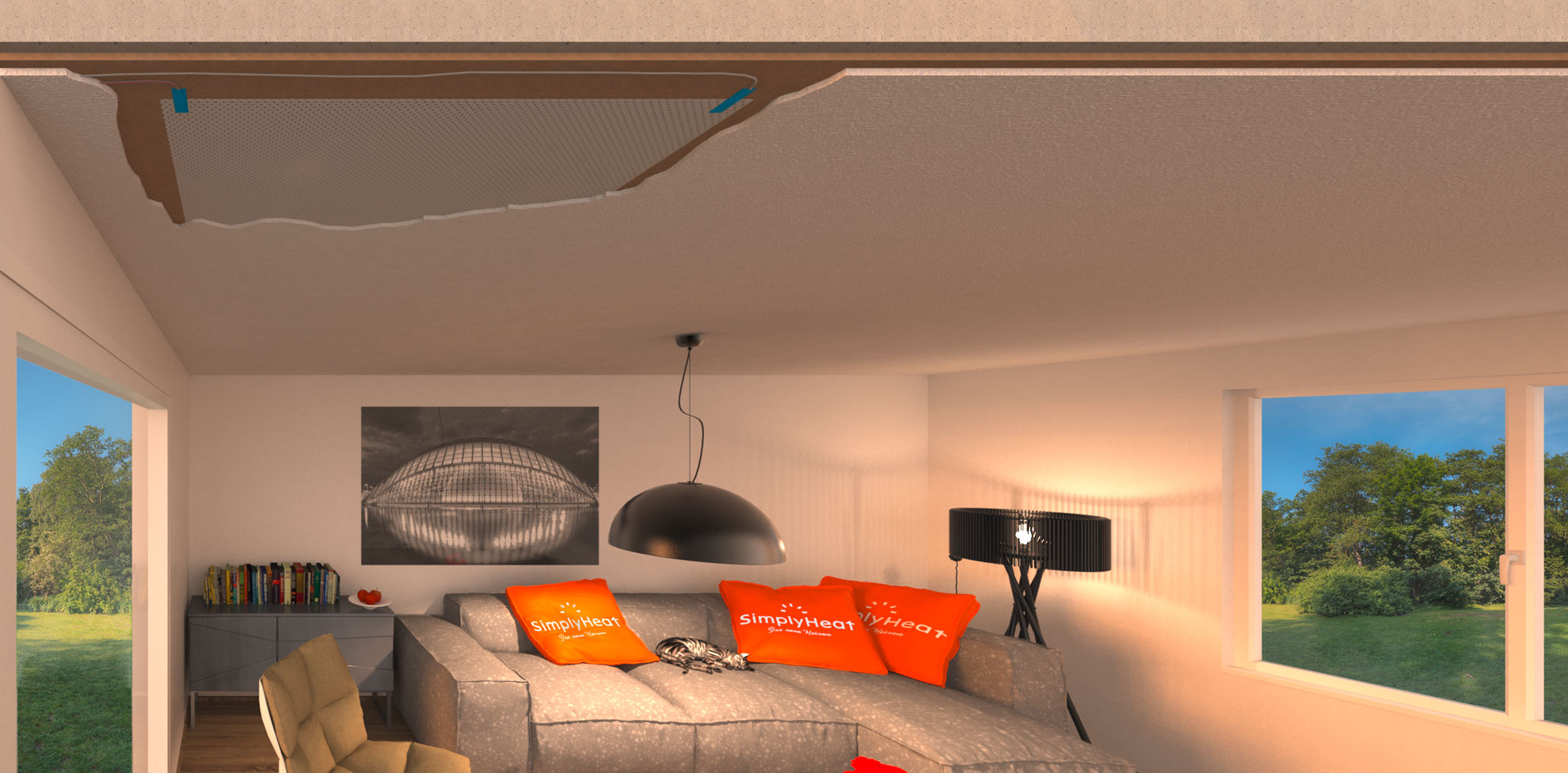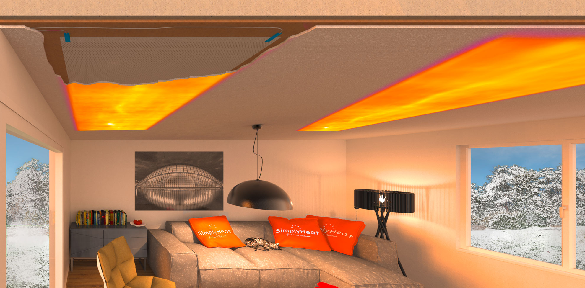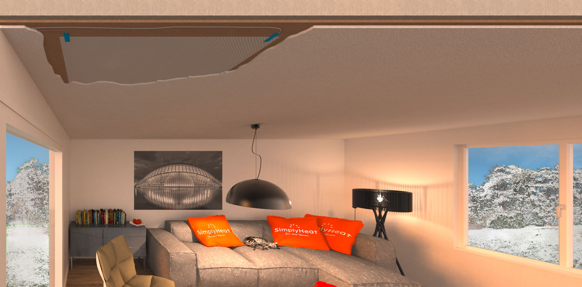 Als hervorragende Ergänzung für unsere Leistungen hat sich unser Partner SimplyHeat bewährt. Die innovative Flächenheizung auf Infrarotbasis erwärmt private und Geschäftsräume mit ihrer sanften Infrarotstrahlung. Die angestrahlten Oberflächen speichern Wärmeenergie und geben diese gleichmäßig und angenehm wieder ab.